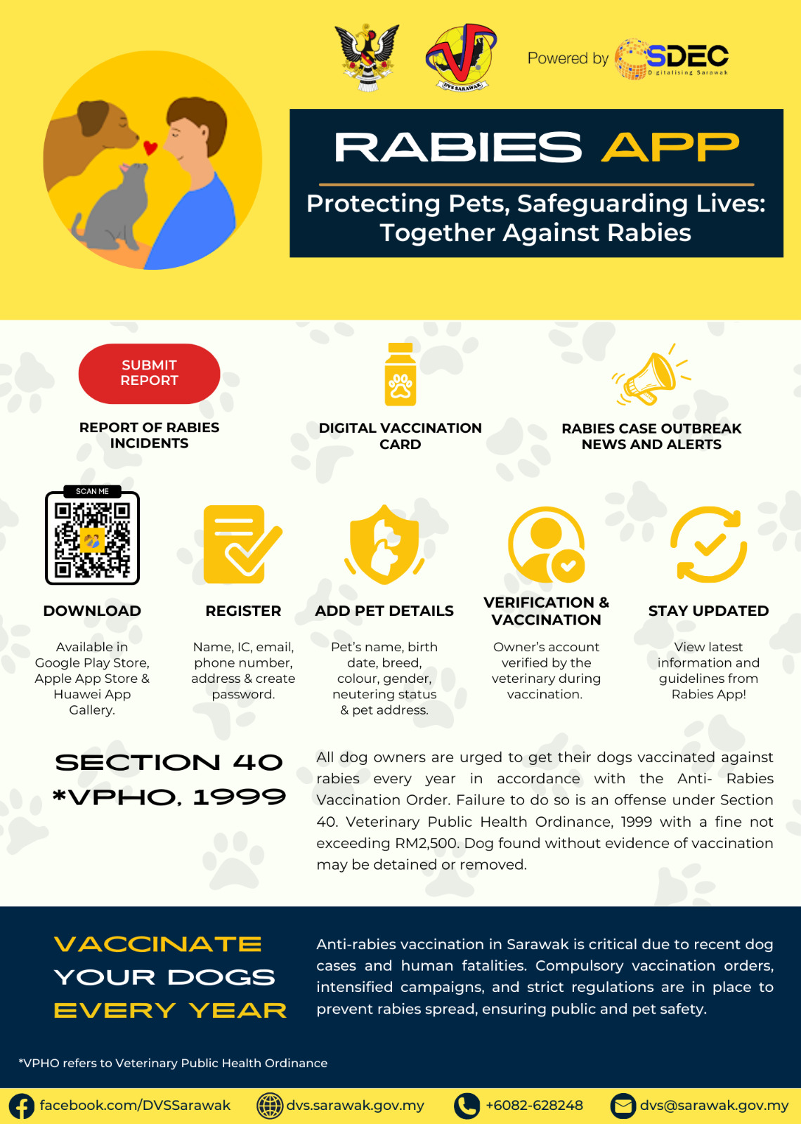 News on rabies outbreak information within app. Pets Data: Pets Information database & Pet’s rabies vaccination record tracking.