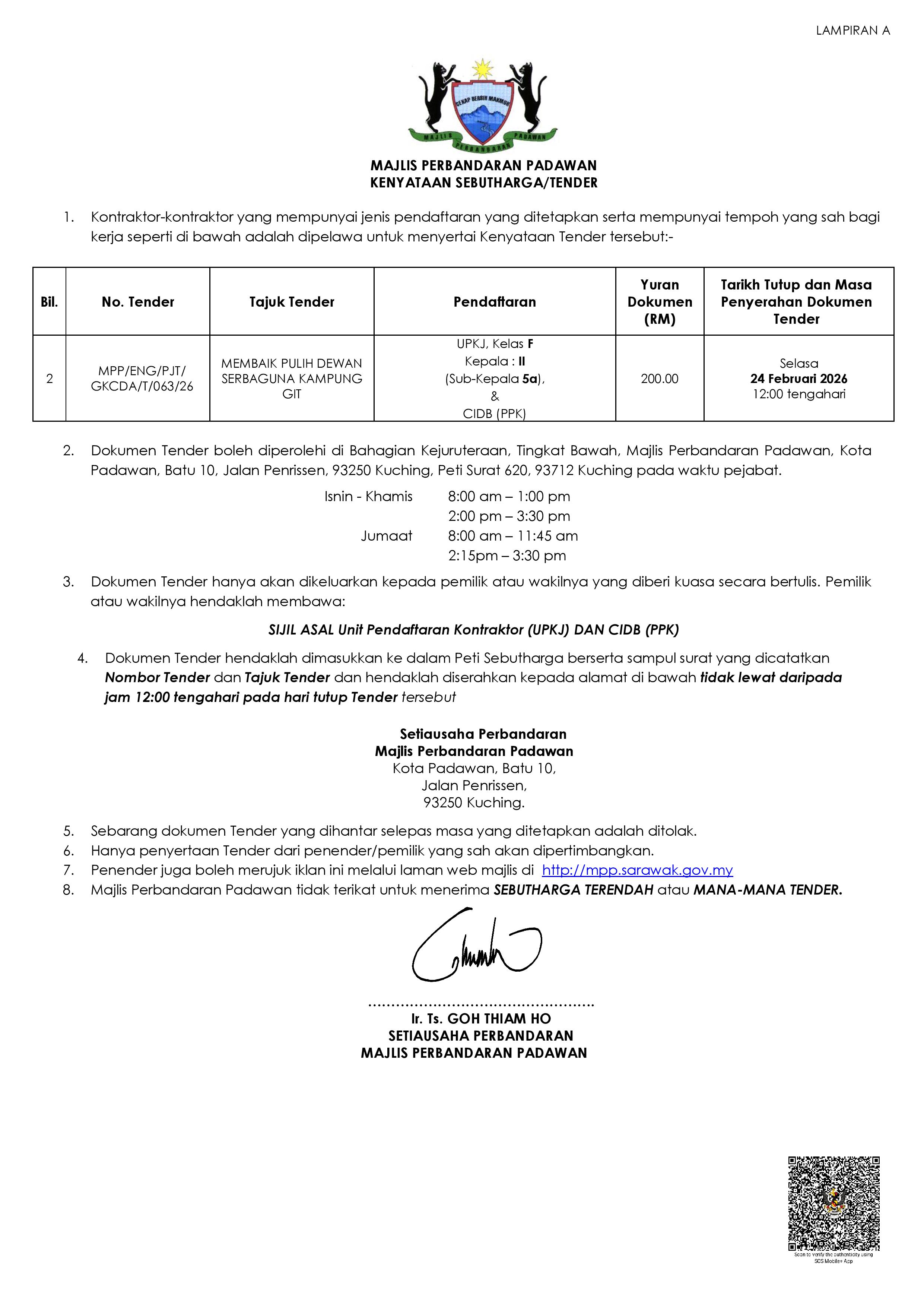 | 3 | Acknowledgement of receipt of public complaint shall be done within 1 working day | 100.00% | 100.00% | 100.00% | 100.00% |
